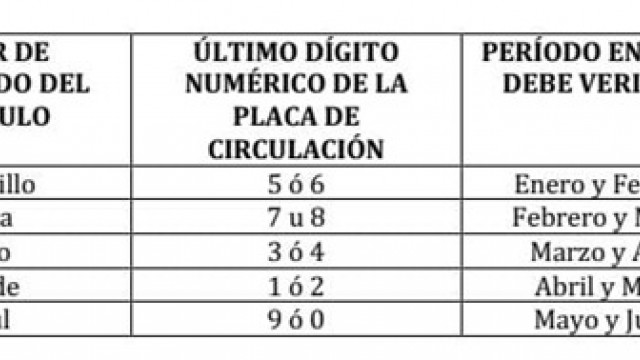 El calendario de verificación de los vehículos matriculados en la Ciudad de México seguirá aplicándose de acuerdo con el color del engomado de circulación o al último dígito numérico de las placas de circulación de la unidad.