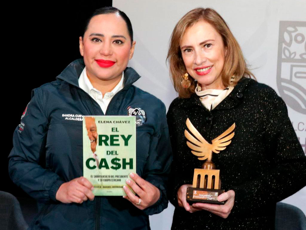 La alcaldesa Sandra Cuevas entregó las “Las Alas de Cuauhtémoc” a Elena Chávez, autora de “El Rey del Cash” / @SandraCuevas_ @AlcCuauhtemocMx >>>