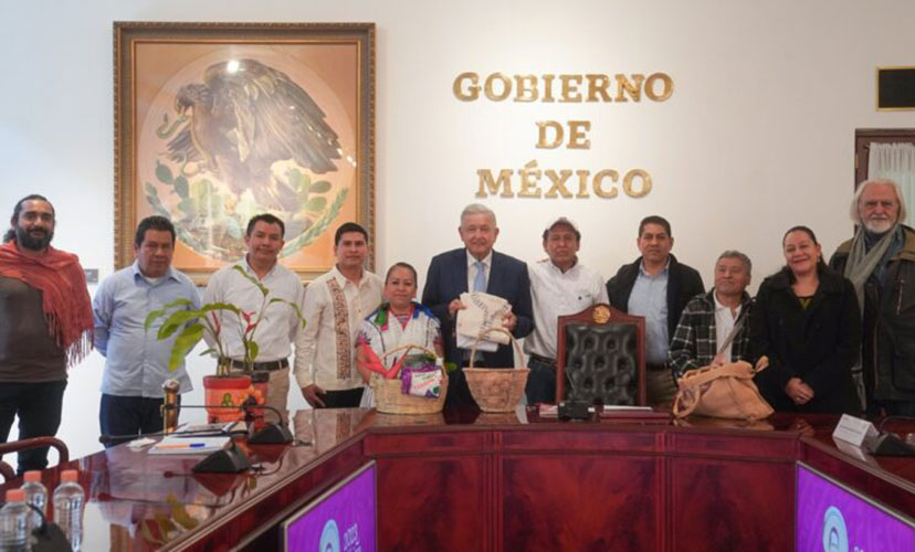 #GobiernoDeMéxico.- El presidente Andrés Manuel López Obrador recibió este miércoles en Palacio Nacional a integrantes de la cooperativa Tosepan, provenientes de Cuetzalan del Progreso, en la Sierra Nororiental de Puebla.