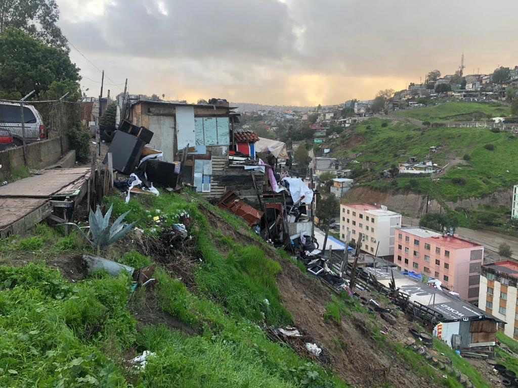 #Tijuana, #B.C.- La Dirección de Protección Civil Municipal notificó a un total de 29 familias sobre la colocación de engomado rojo «Alto Riesgo» en sus viviendas, localizadas en una zona de invasión en Infonavit Latinos, de la delegación Sánchez Taboada, debido al riesgo de deslizamiento.