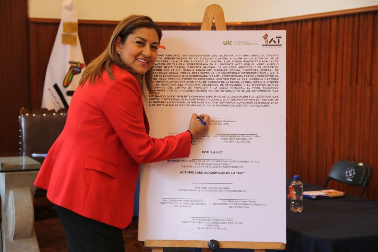#Tlalpan, #CDMX.- En el marco de las actividades del Día Naranja que se lleva a cabo el 25 de cada mes, la Alcaldía Tlalpan firmó un convenio de colaboración con la Universidad Intercontinental (UIC) con el objetivo de brindar atención psicológica a mujeres, niñas y adolescentes que hayan sido víctimas de violencia, ya que la mayoría carece de servicios de salud y herramientas adecuadas para la intervención de la violencia en la demarcación.