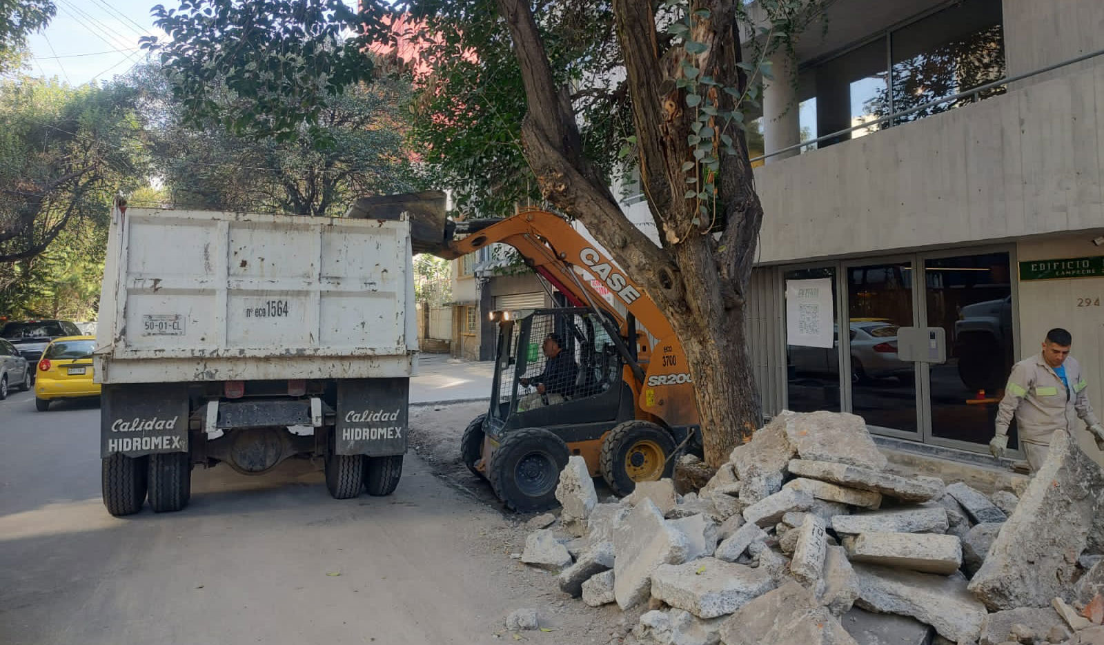 #Cuauhtémoc, #CDMX.- Con el objetivo de ofrecer una demarcación digna para los ciudadanos, personal de mantenimiento de la alcaldía Cuauhtémoc llevó a cabo el retiro de cascajo para continuar con trabajos de rehabilitación en la colonia Condesa.