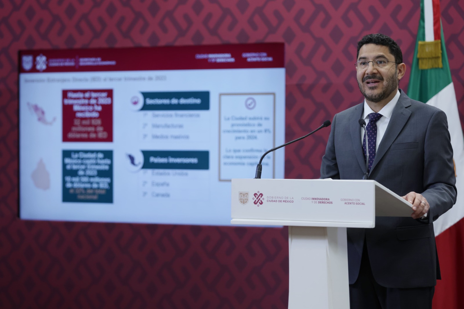#CDMX.- El Jefe de Gobierno, Martí Batres Guadarrama, presentó los resultados económicos de la Ciudad de México durante 2023, que alcanzaron niveles históricos en materia de derrama económica, Inversión Extranjera Directa, apertura de negocios de bajo y alto impacto y un aumento en la generación de empleos.