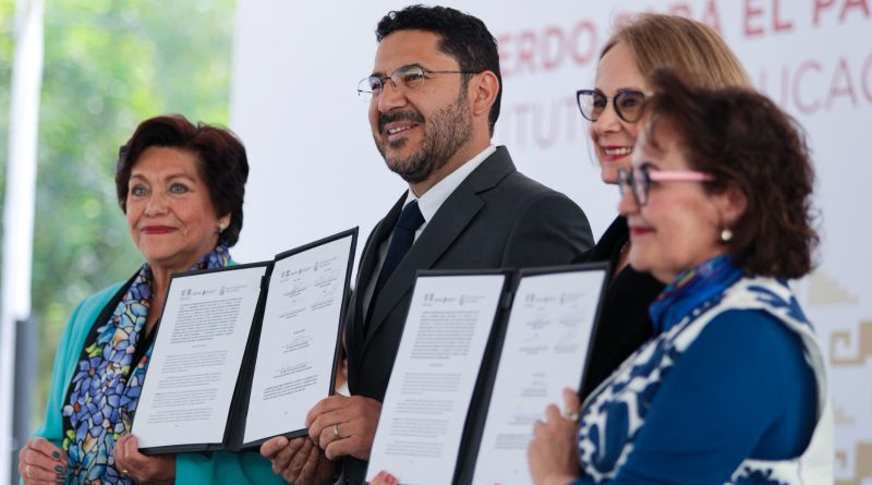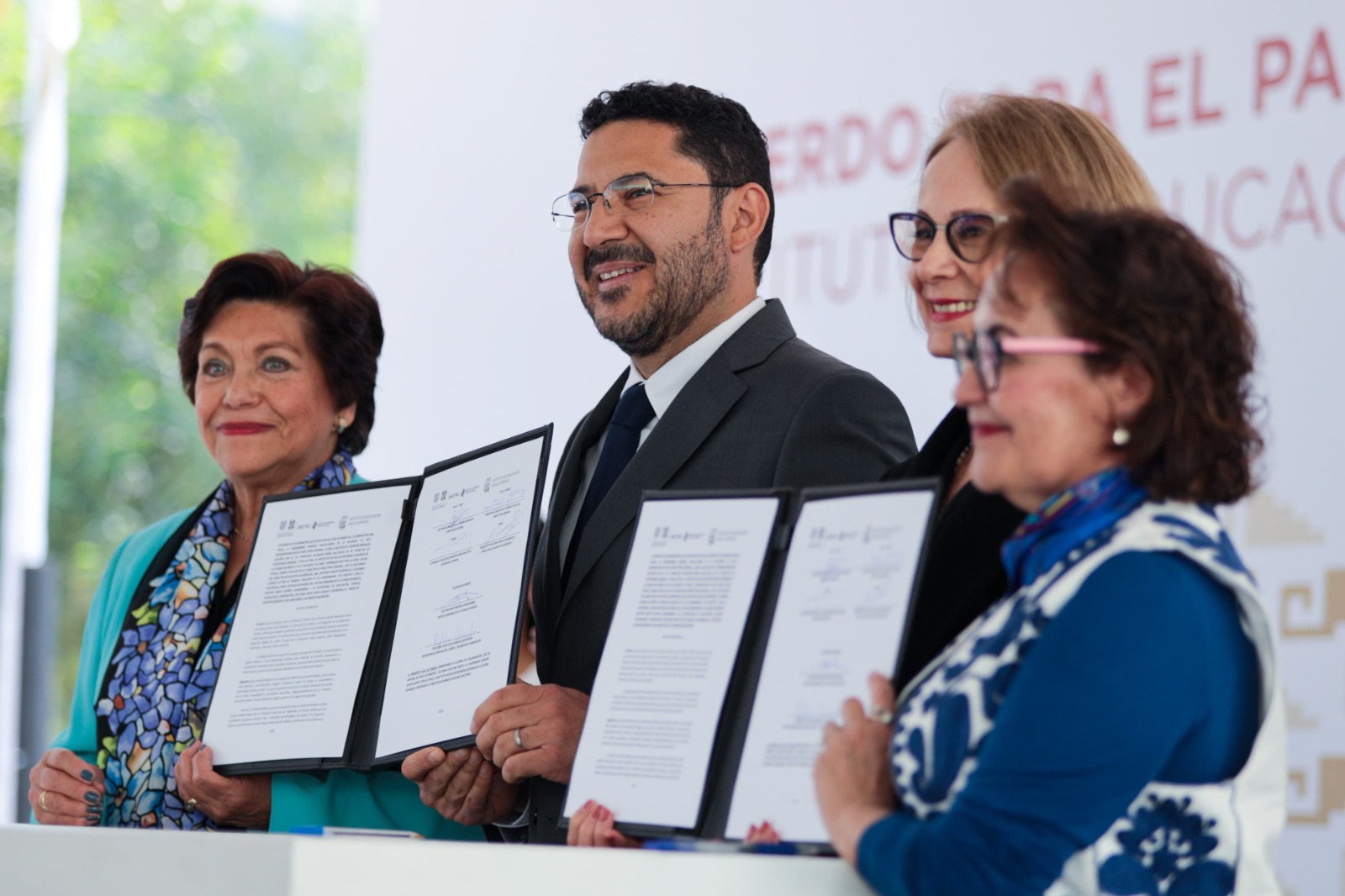 #CDMX.- El Jefe de Gobierno, Martí Batres Guadarrama, encabezó la firma del Acuerdo para el Pase Automático de Educación Media Superior a Superior, celebrado entre el Instituto de Educación Media Superior de la Ciudad de México (IEMS) y la Universidad Rosario Castellanos (URC), con el objetivo de garantizar el acceso a estudios universitarios gratuitos y de calidad para los jóvenes.
