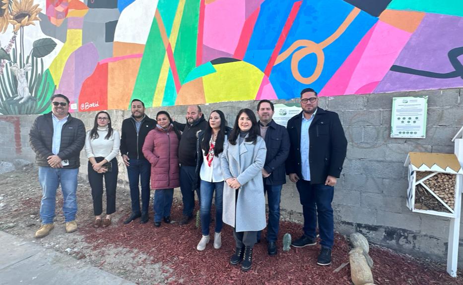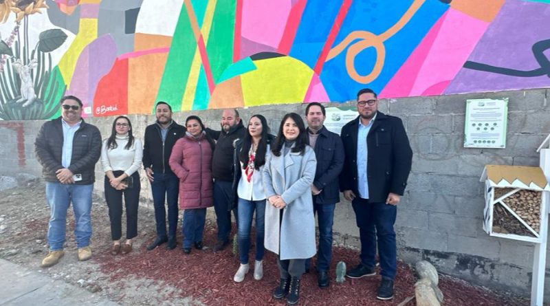 En este caso, se intervino un área pública frente a las instalaciones del IMPLAN y la delegación municipal Cerro Colorado, sobre calle Canadá de la Zona Río Tercera Etapa, con murales, revegetación con plantas endémicas, hotel para polinizadores, esto con ayuda de la comunidad y estudiantes del COBACHBC plantel Nueva Tijuana.