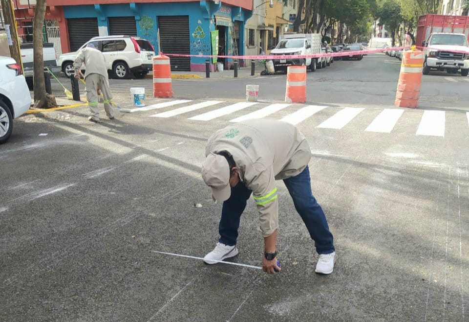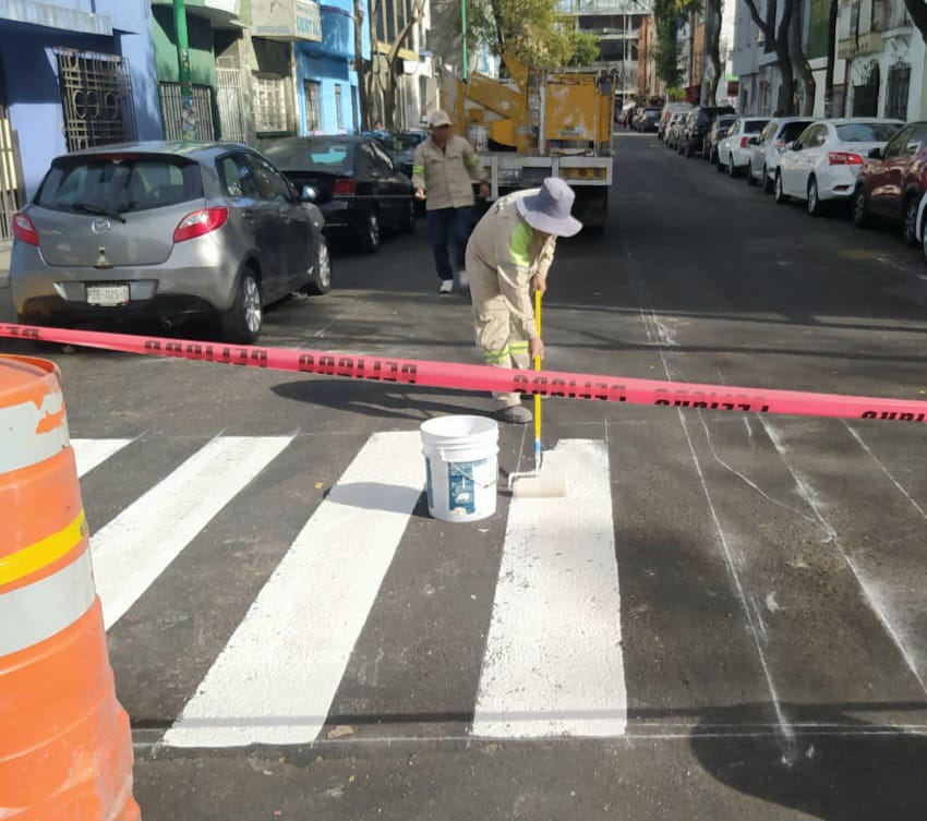 #Cuauhtémoc, #CDMX.- Elementos de mantenimiento de la alcaldía Cuauhtémoc, llevaron a cabo trabajos de balizado vehicular, peatonal y de guarnición en calles de la colonia Tabacalera.