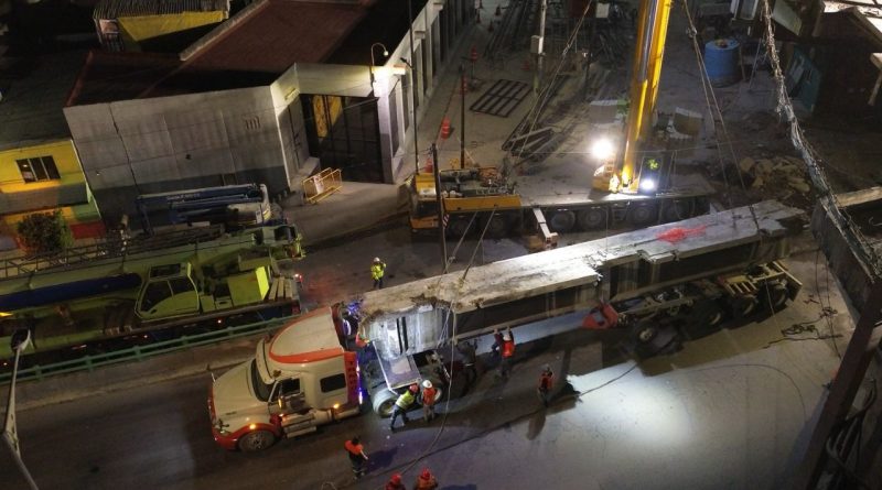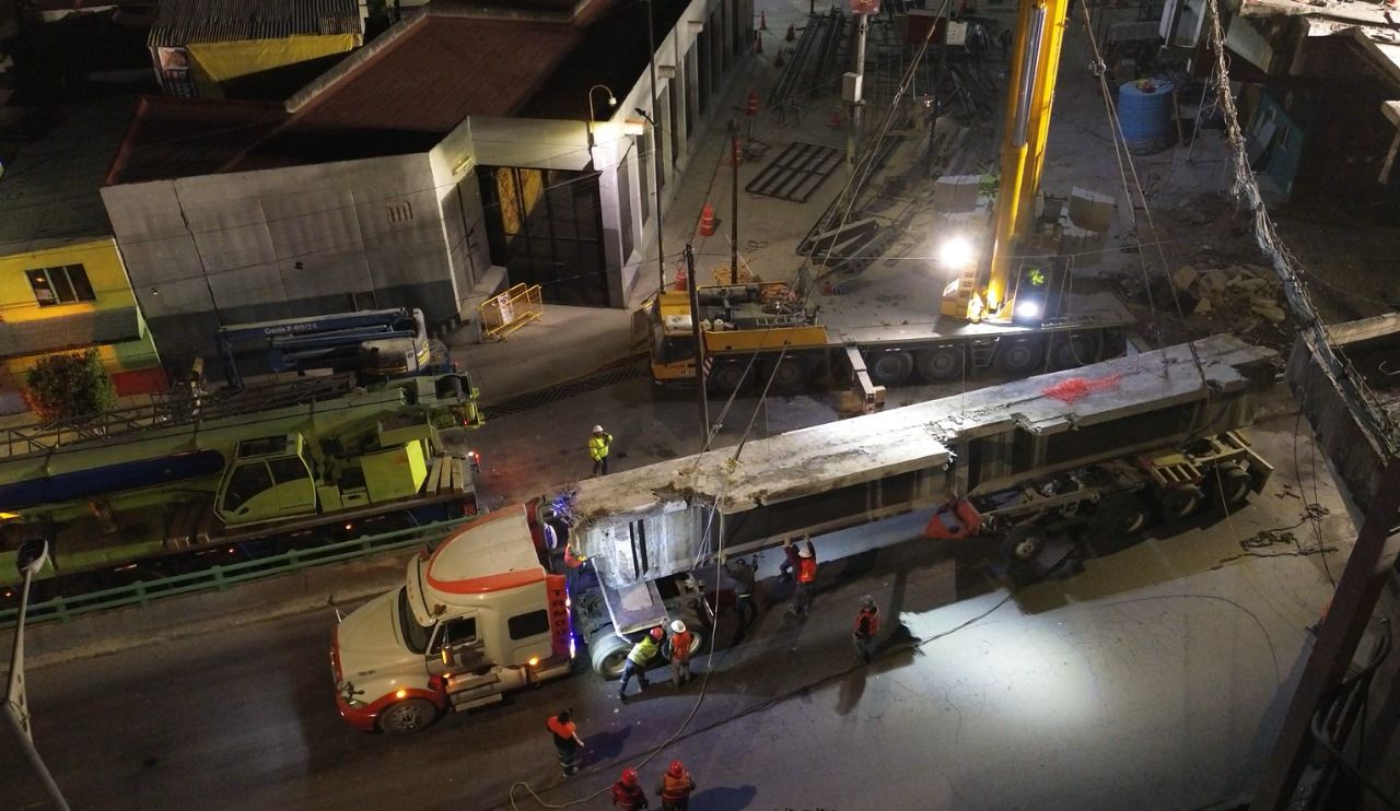 Este 15 de febrero se llevó a cabo el desmontaje de una trabe tipo TC-2-3, con un peso de 40 toneladas y 17 metros de longitud. Una vez concluido el desmantelamiento, la pieza fue trasladada a una planta de triturado para su reciclaje.