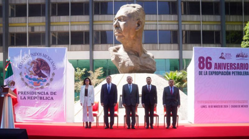 #GobiernoDeMéxico.- En la conmemoración del 86 Aniversario de la Expropiación Petrolera, el presidente Andrés Manuel López Obrador afirmó que es fundamental continuar la ruta hacia la autosuficiencia en la producción de petróleo, gasolinas y combustibles en tanto se consolida la transición hacia energías limpias y renovables para cuidar el ambiente.