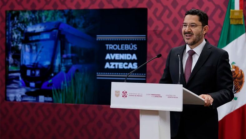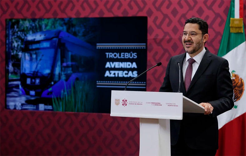 #CDMX.- El Jefe de Gobierno, Martí Batres Guadarrama, informó los avances de obra del Trolebús Aztecas, que reducirá tiempos de traslado de 115 mil habitantes de la zona de Pedregales de la Alcaldía Coyoacán, para lo cual se trabaja en la construcción de plataformas con accesibilidad universal, reemplazo de asfalto por concreto hidráulico en zonas de arribo, configuración de cruceros seguros, repavimentación de vialidades, entre otras acciones.