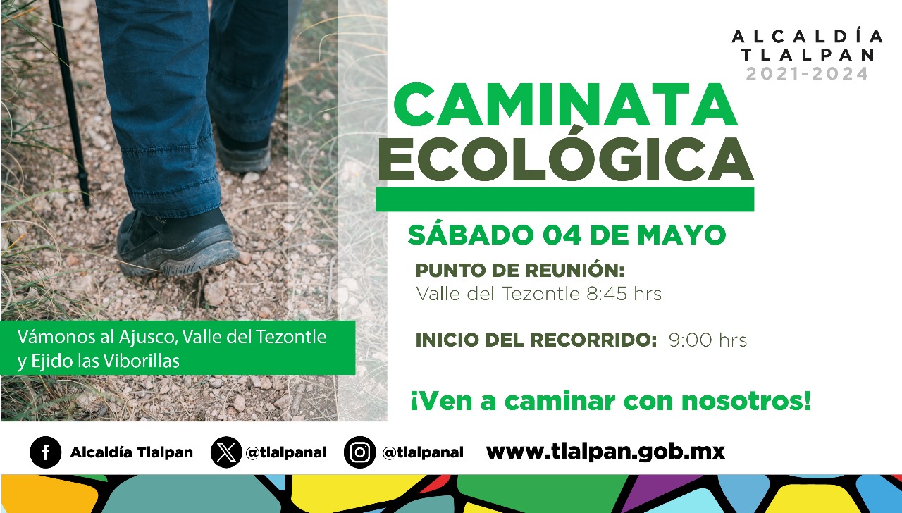 #Tlalpan, #CDMX.- La alcaldía Tlalpan invita a una experiencia única en la naturaleza con la jornada de senderismo “Caminata ecológica”, diseñada especialmente para aquellos que están dando sus primeros pasos en esta disciplina. La cita es este próximo sábado 4 de mayo, el punto de encuentro será en el Valle del Tezontle a las 8:30 horas para iniciar con las actividades a las 9:00 en punto.