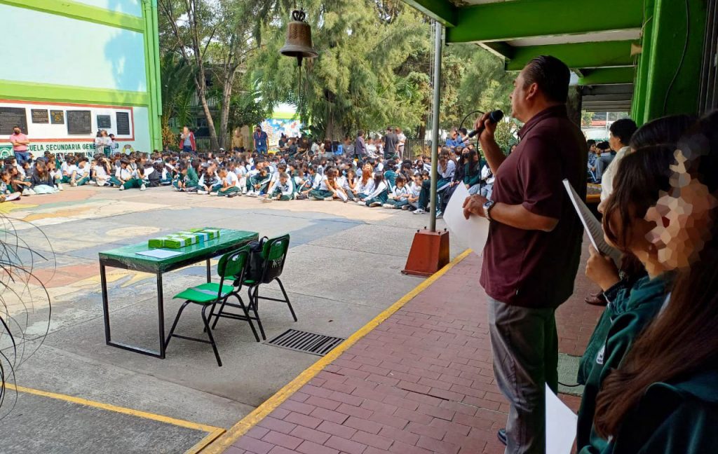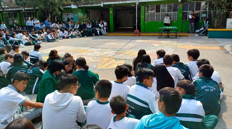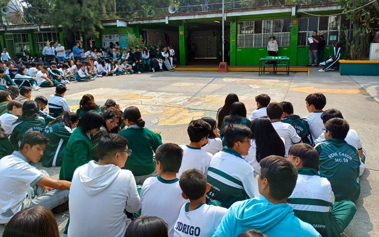 #Iztacalco, #CDMX.- Iniciando la semana en la estrategia «Lunes por la Educación para la Paz», en la Secundaria René Cassin, Alcaldía Iztacalco. Generando diálogo con los estudiantes para promover una vida libre de violencia.