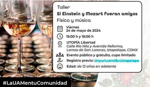 #Iztapalapa, #CDMX.- La alcaldía Iztapalapa, a través de una publicación en redes sociales, extendió la invitación a todas las personas mayores de 12 años a participar, el próximo viernes 24 de mayo, al Taller Educativo de física y música 𝗦𝗶 𝗘𝗶𝗻𝘀𝘁𝗲𝗶𝗻 𝘆 𝗠𝗼𝘇𝗮𝗿𝘁 𝗳𝘂𝗲𝗿𝗮𝗻 𝗮𝗺𝗶𝗴𝗼𝘀.