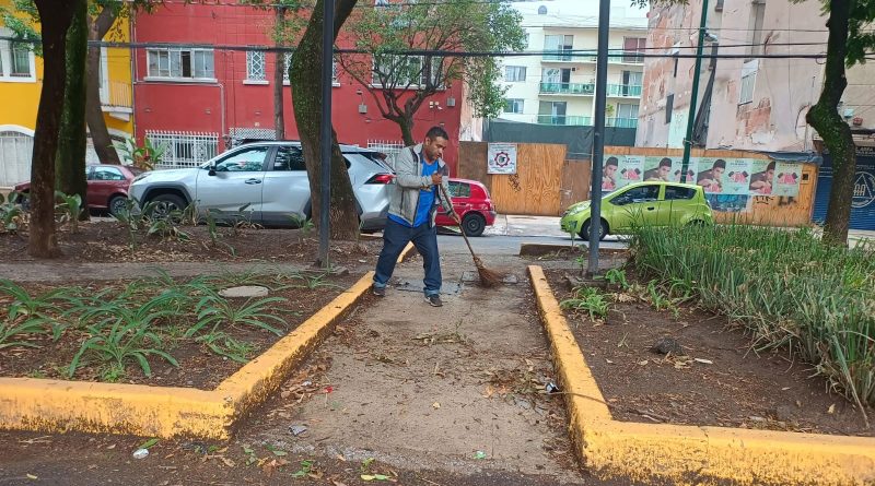 #BenitoJuárez, #CDMX.- Elementos de mantenimiento de la alcaldía Benito Juárez, trabajos de barrido, balizado, poda, bacheo, retiro de gallardetes, desazolve y reparaciones de alumbrado público en Zempoala.