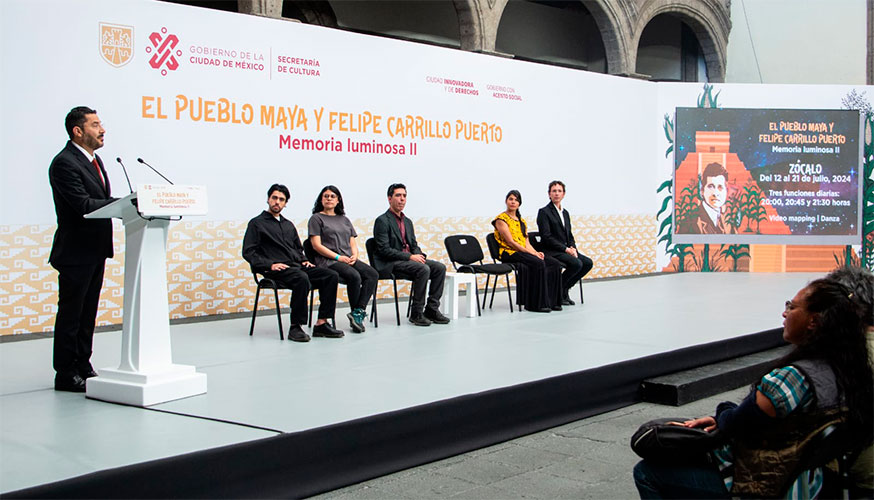 #CDMX.- El Jefe de Gobierno, Martí Batres Guadarrama, presentó el espectáculo audiovisual “El Pueblo Maya y Felipe Carrillo Puerto. Memoria Luminosa II” en el marco de los 100 años de la muerte de Felipe Carrillo Puerto.