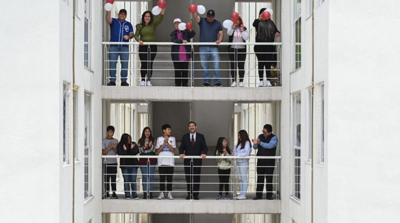 Ante las y los vecinos del conjunto ubicado en Avenida San Antonio 423, resaltó que la producción de vivienda de interés social es muy importante para que las familias de bajos ingresos puedan tener su hogar, lo que sería muy difícil a través del mercado inmobiliario.
