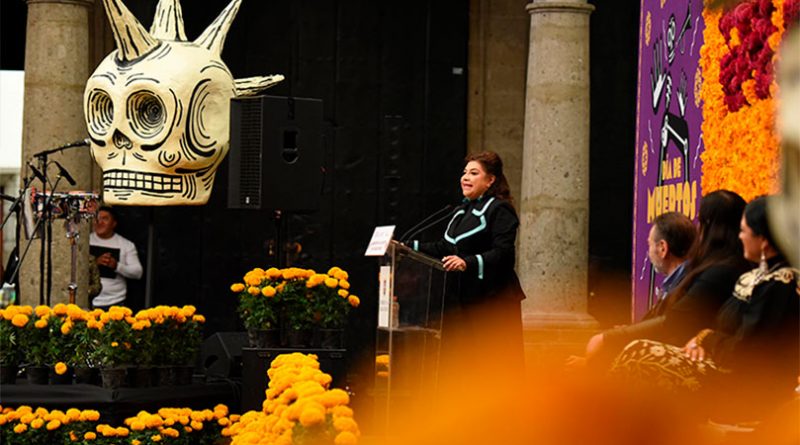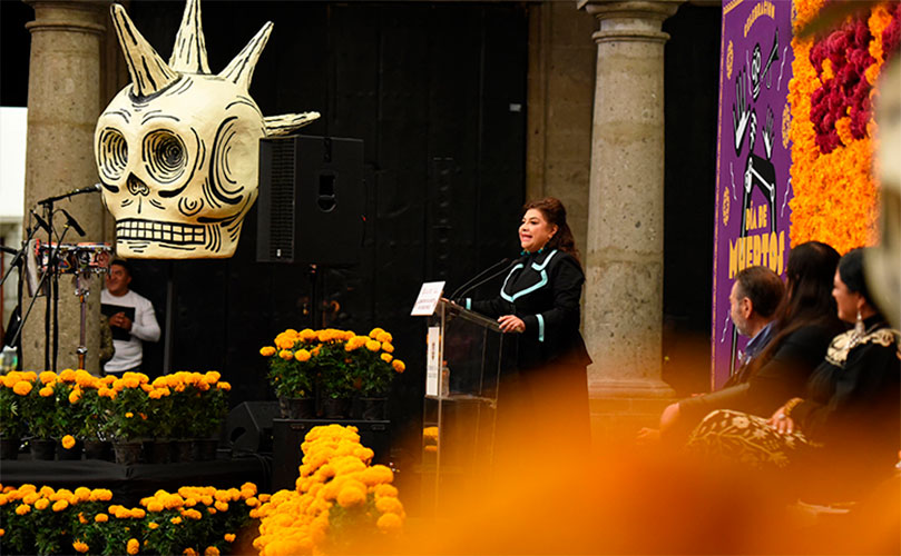 “Empieza aquí, en la Ciudad de México, el homenaje, la conmemoración y la llegada de nuestros muertos, recibámoslos con alegría, con pasión, hagámoslo en nuestras casas con una pequeña ofrenda, pero no dejemos de hacer estas tradiciones; y en grande aquí en el Centro. (…) Vamos a tener estas grandes y maravillosas exhibiciones y desfiles, así que podemos decir que estas festividades son un regalo que nuestro pueblo da al mundo y que provienen de lo más profundo de la cultura mexicana, es nuestra esencia, así que, tenemos que valorarla, tenemos que impulsar. (…) Tenemos una riqueza cultural maravillosa que hay que rescatar, así que ¿a qué le apostamos? A hacer que en esta ciudad se viva el Día de los Muertos con toda la tradición y cultura”, expresó.