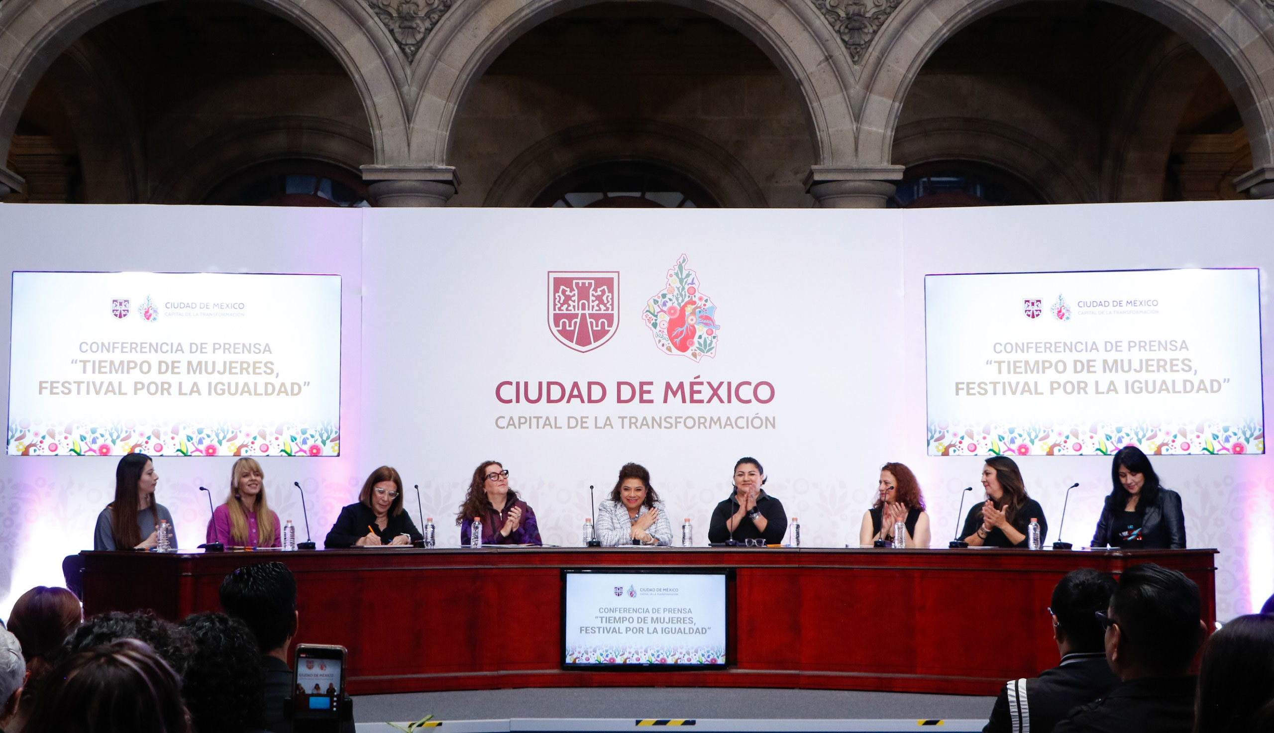 #CDMX.- La jefa de Gobierno de la Ciudad de México, Clara Brugada Molina, encabezó el anuncio de Tiempo de Mujeres, Festival por la Igualdad, cuyo objetivo es que la cultura, desde las mujeres, se adueñe de los espacios públicos y de todos los lugares en esta ciudad, para ejercer nuestro derecho a la cultura.