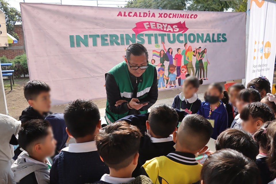 #Xochimilco, #CDMX.- La alcaldía Xochimilco, en colaboración con el Centro de Integración Juvenil (CIJ), la Fundación Petit Fils México A.C. y el Fondo de Población de las Naciones Unidas, llevó a cabo una Feria interinstitucional en la escuela primaria «Itzcoatl». Durante este evento, se brindó atención e información a las y los alumnos sobre diversos temas, incluyendo derechos humanos, prevención de violencia y acoso escolar.