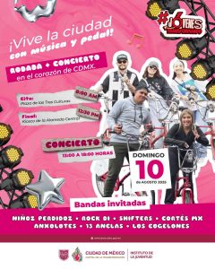 Al final del recorrido, a partir de la 1:00 p. m., habrá un concierto de rock gratuito en el Quiosco de la Alameda Central con bandas emergentes como Niñoz Perdidoz, Rock Di, Shifters, Cortés Mx, Anxolotes, 13 Anclas, Los Cogelones y Entr3ntes. ¡No te lo pierdas!